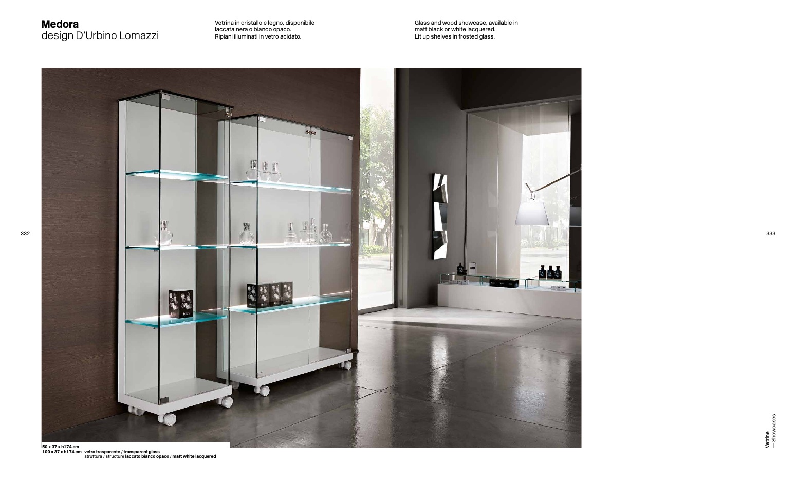 Glass and wood showcase, available in