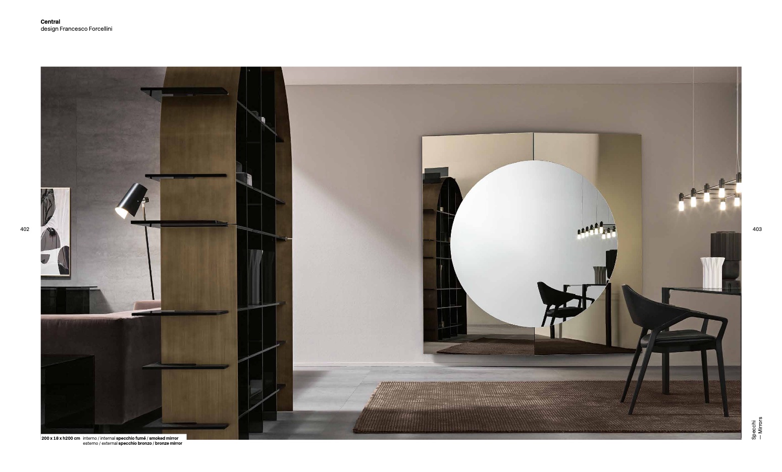 200 x 18 x h200 cm interno / internal specchio fumé / smoked mirror