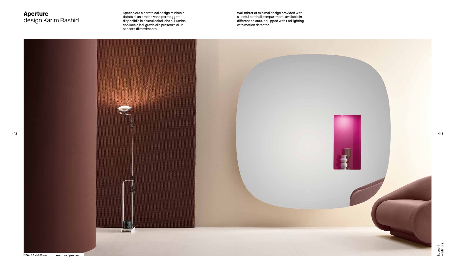 Wall mirror of minimal design provided with