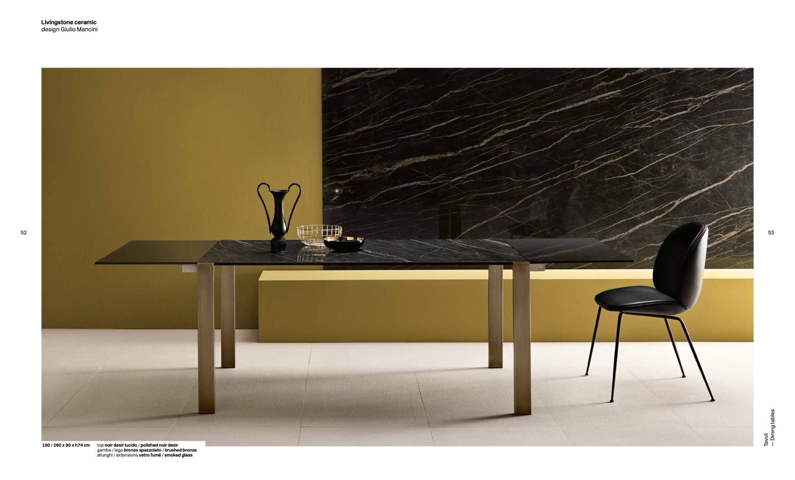 160 / 260 x 90 x h74 cm top noir desir lucido / polished noir desir