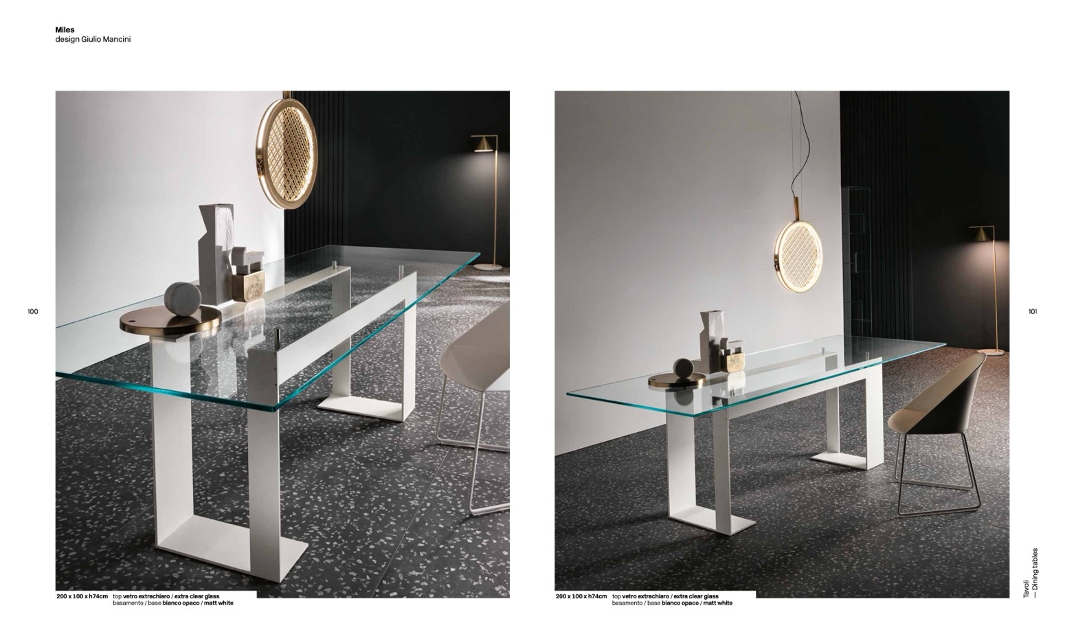 200 x 100 x h74cm top vetro extrachiaro / extra clear glass