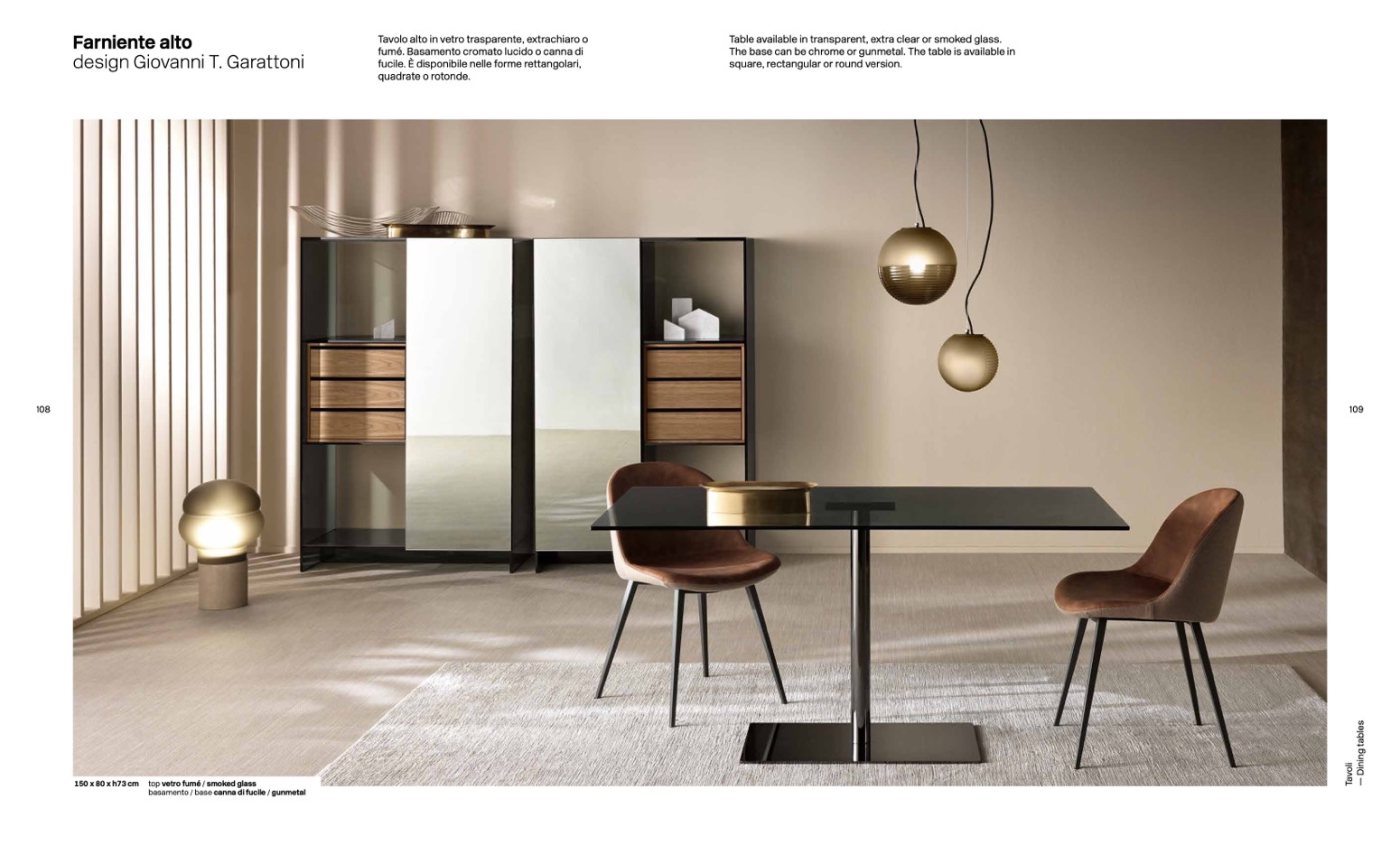 150 x 80 x h73 cm top vetro fumé / smoked glass
