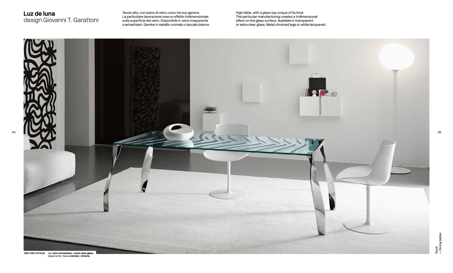 o extrachiaro. Gambe in metallo cromato o laccato bianco.