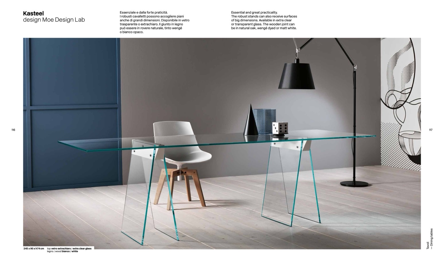 245 x 90 x h74 cm top vetro extrachiaro / extra clear glass
