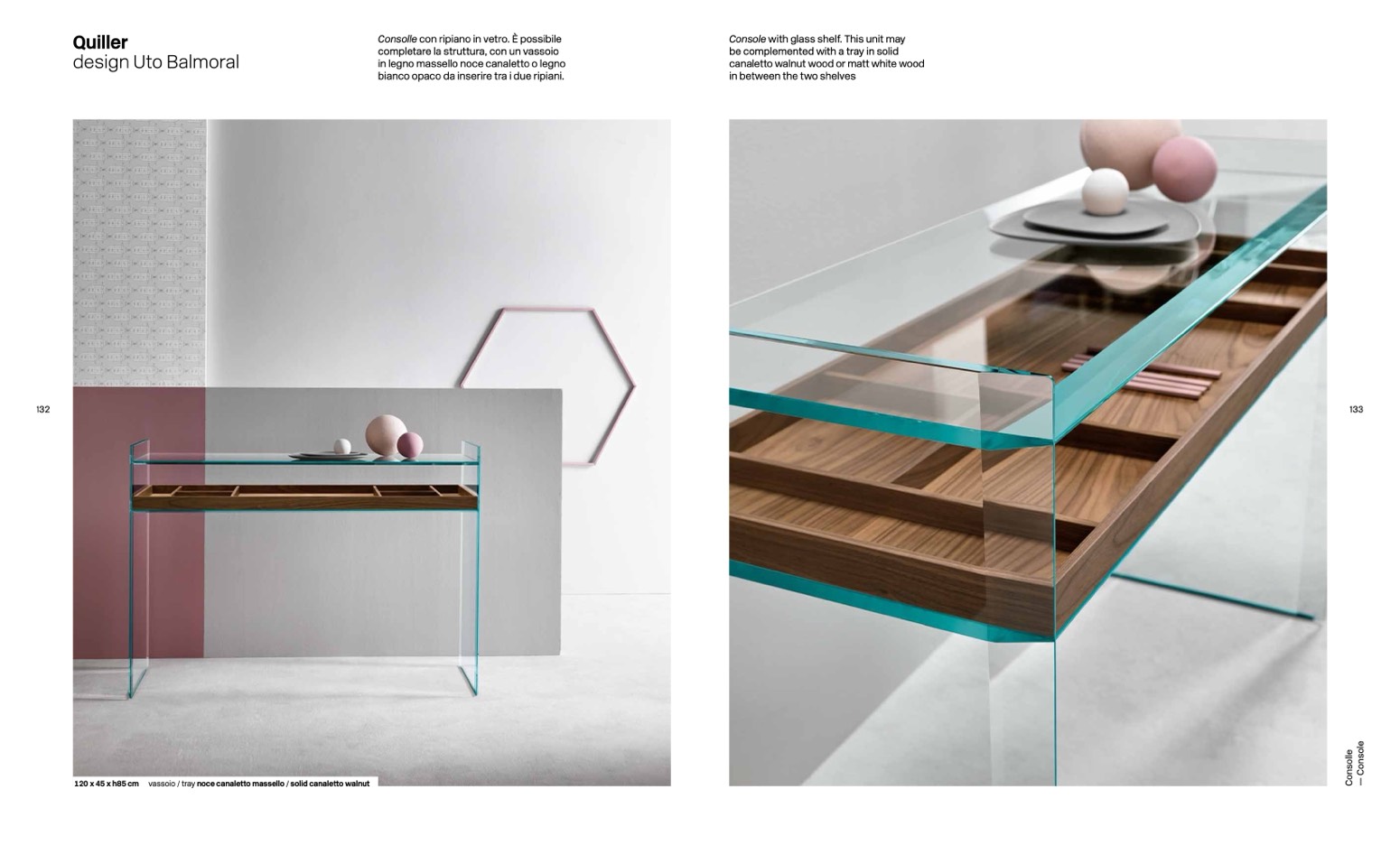 120 x 45 x h85 cm vassoio / tray noce canaletto massello / solid canaletto walnut