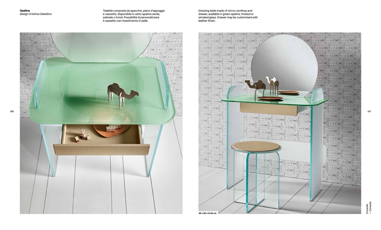 e cassetto, disponibile in vetro opalina verde,