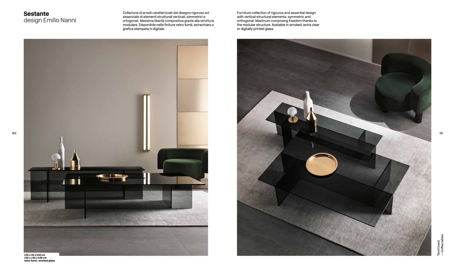 modulare. Disponibile nelle finiture vetro fumé, extrachiaro o
