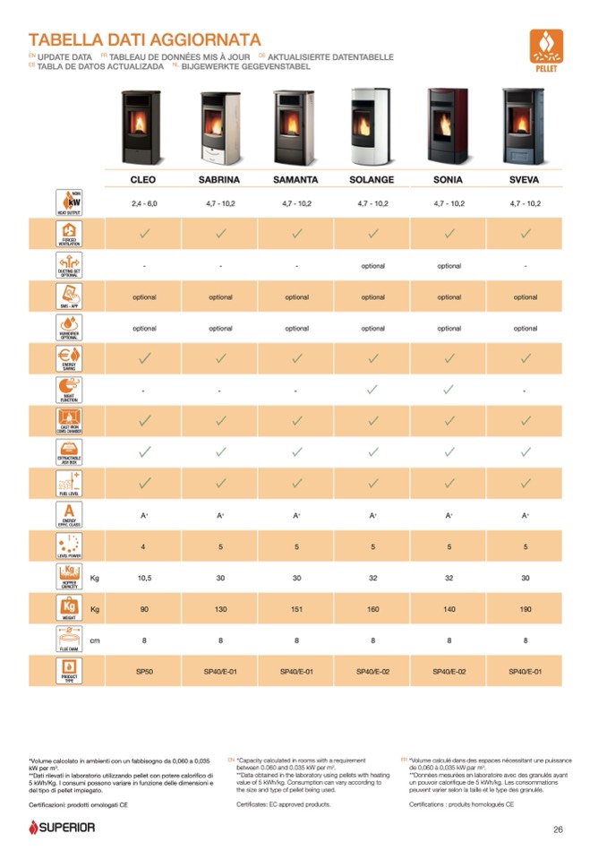 **Dati rilevati in laboratorio utilizzando pellet con potere calorifico di