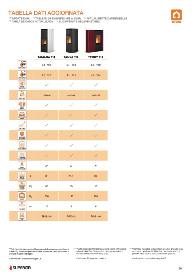 **Dati rilevati in laboratorio utilizzando pellet con potere calorifico di
