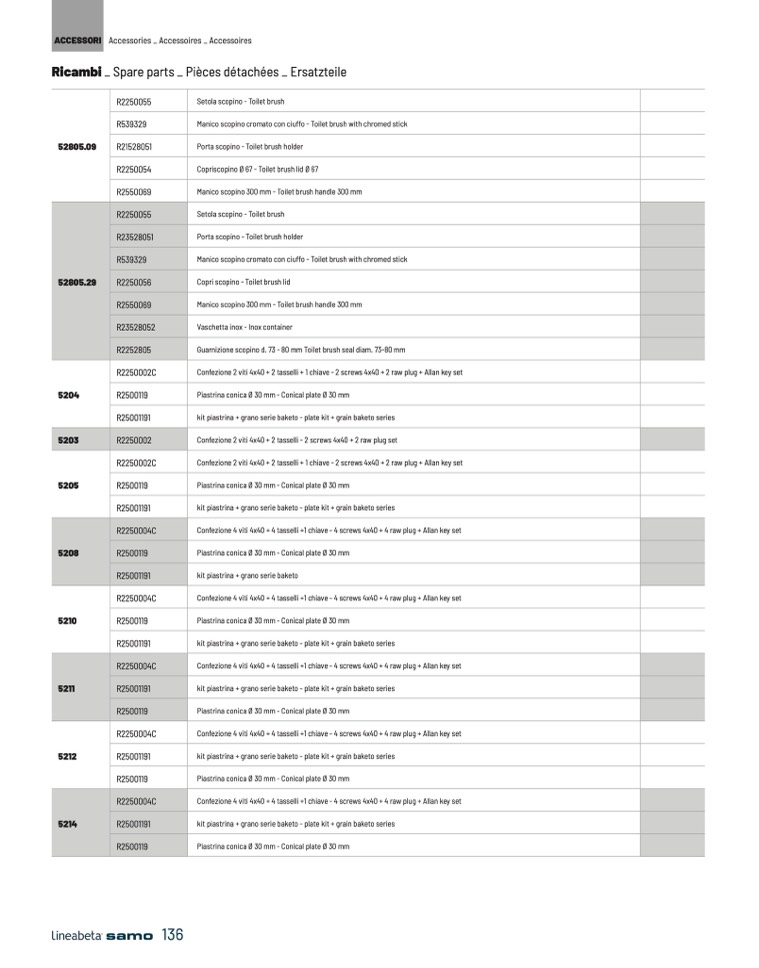 Guarnizione scopino d. 73 - 80 mm Toilet brush seal diam. 73-80 mm