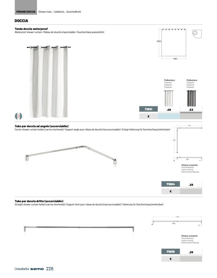 Straight shower curtain holder (can be shortened) / Support droit pour rideau de douche (raccourcissable) / Halterung für Duschvorhang (verkürzbar)