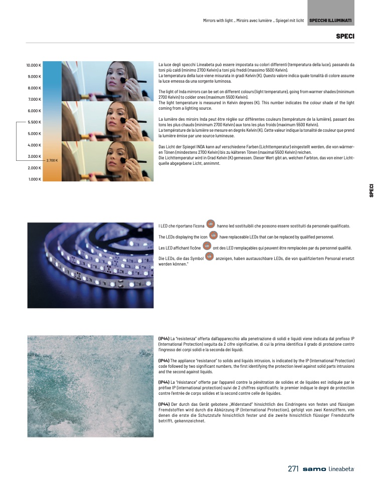 La luce degli specchi Lineabeta può essere impostata su colori differenti (temperatura della luce), passando da