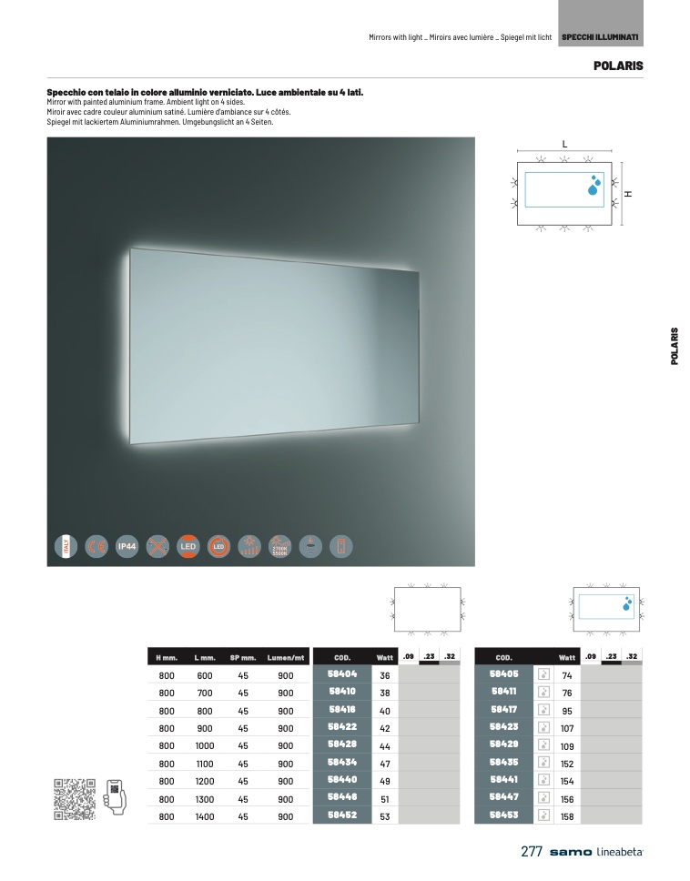 Mirror with painted aluminium frame. Ambient light on 4 sides.