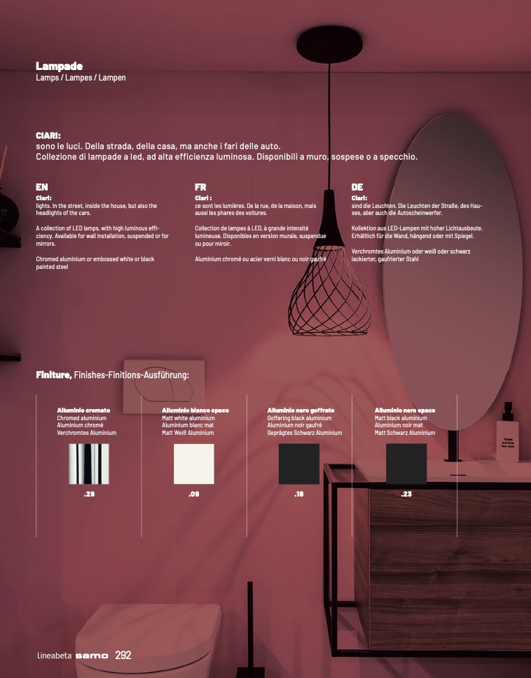 Erhältlich für die Wand, hängend oder mit Spiegel.
