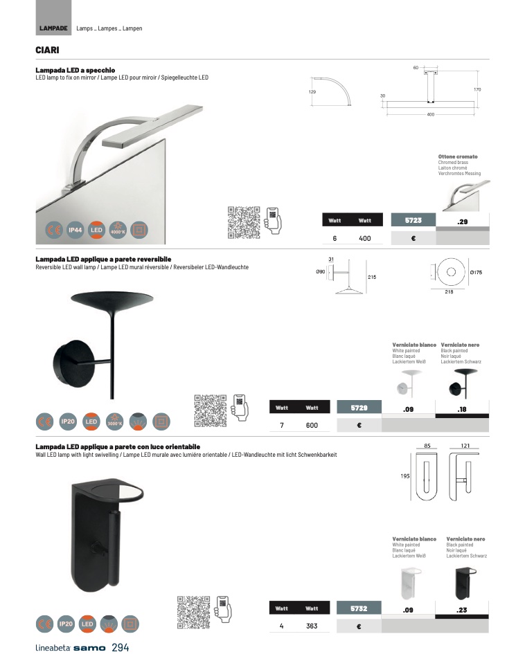 Wall LED lamp with light swivelling / Lampe LED murale avec lumiére orientable / LED-Wandleuchte mit licht Schwenkbarkeit