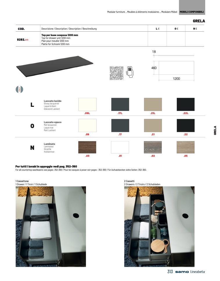 For all countertop washbasins see pages: 352-360 / Pour les vasques à poser voir pages : 352-360 / Für Aufsatzbecken siehe Seiten: 352-360.