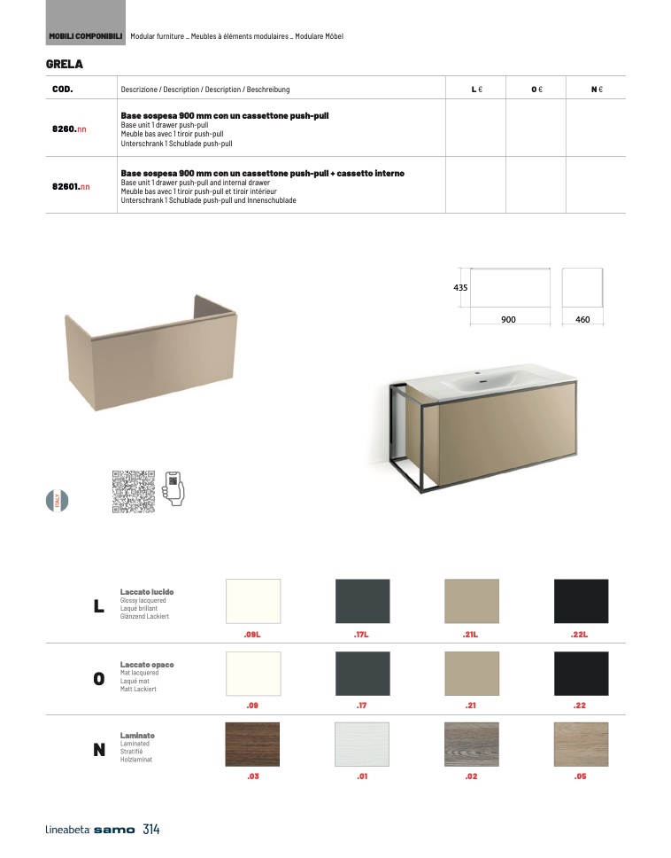 Base sospesa 900 mm con un cassettone push-pull + cassetto interno