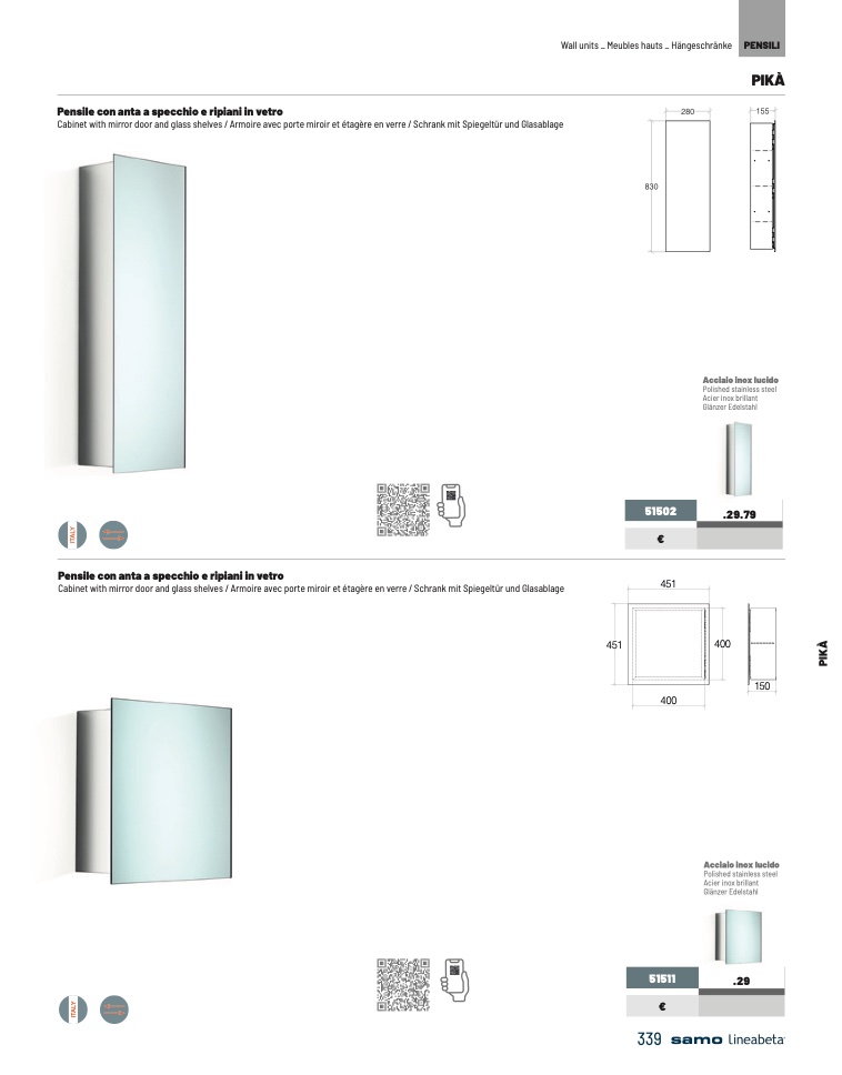 Cabinet with mirror door and glass shelves / Armoire avec porte miroir et étagère en verre / Schrank mit Spiegeltür und Glasablage