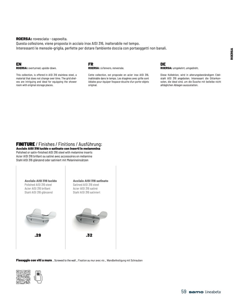 This collection, is offered in AISI 316 stainless steel, a