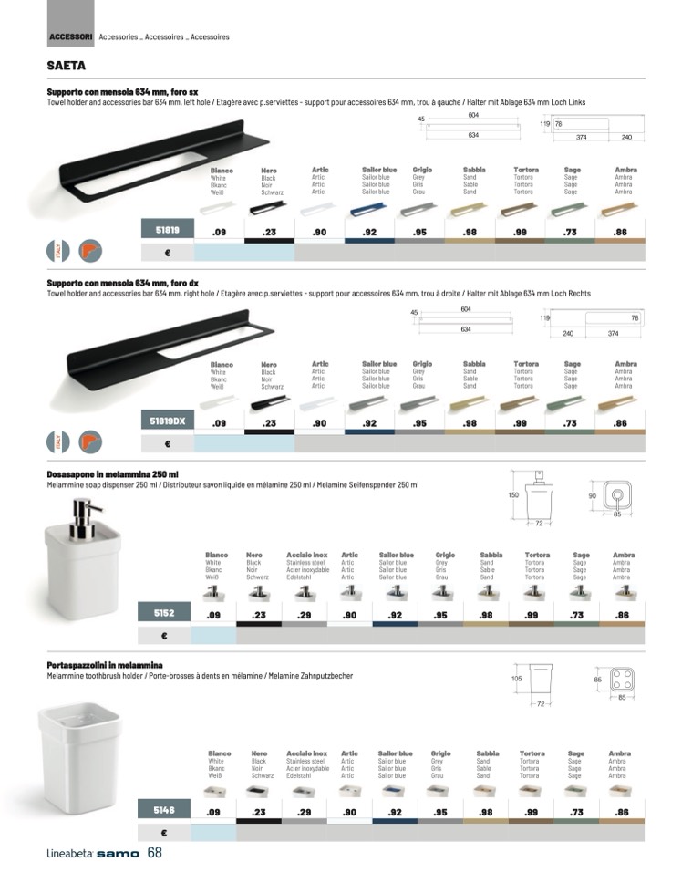 Towel holder and accessories bar 634 mm, left hole / Etagère avec p.serviettes - support pour accessoires 634 mm, trou à gauche / Halter mit Ablage 634 mm Loch Links