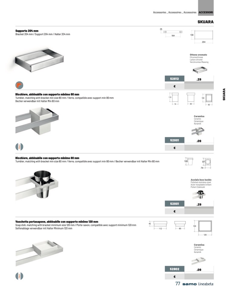 Vaschetta portasapone, abbinabile con supporto minimo 120 mm