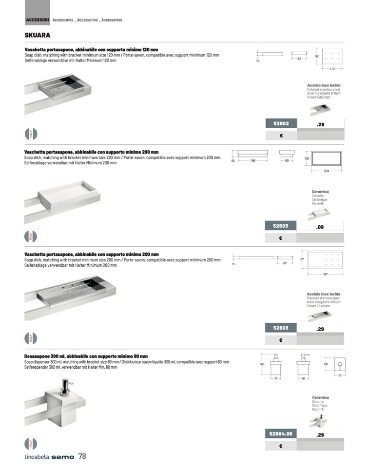 Vaschetta portasapone, abbinabile con supporto minimo 200 mm