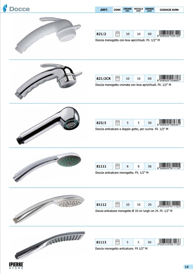 Doccia anticalcare monogetto. Fil. 1/2” M