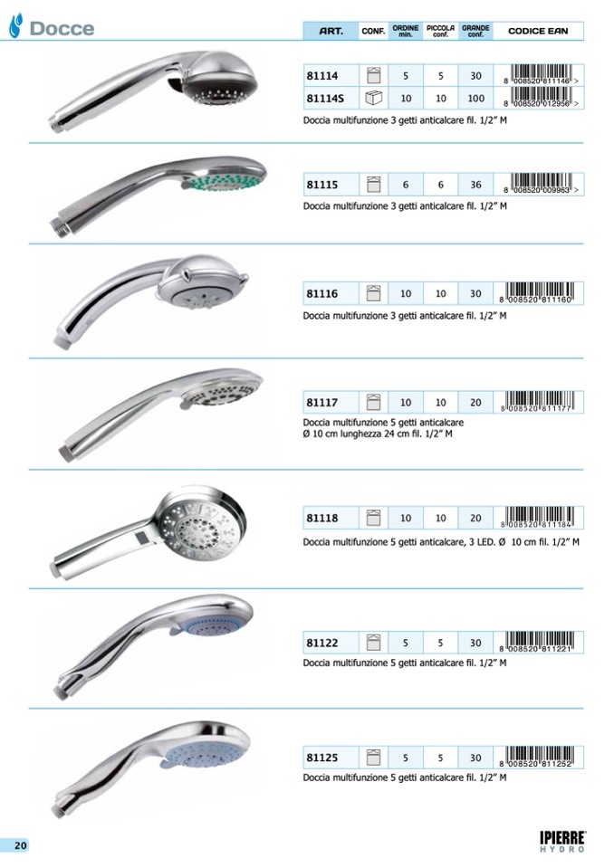 Doccia multifunzione 5 getti anticalcare fil. 1/2” M