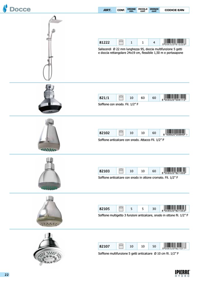 Saliscendi Ø 22 mm lunghezza 95, doccia multifunzione 5 getti