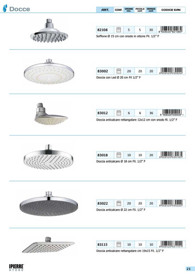 Doccia anticalcare Ø 18 cm Fil. 1/2” F