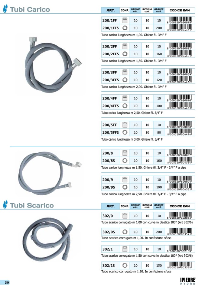 Tubo carico lunghezza m 2,50. Ghiere fil. 3/4” F