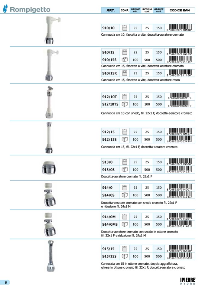 ghiera in ottone cromato fil. 22x1 F, doccetta-aeratore cromato