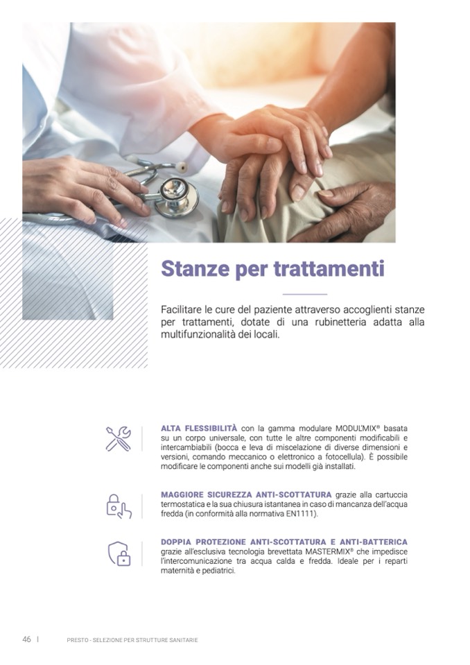 l’intercomunicazione tra acqua calda e fredda. Ideale per i reparti