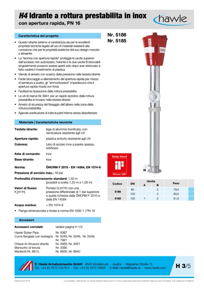 • Questo idrante esterno si caratterizza sia per le eccellenti