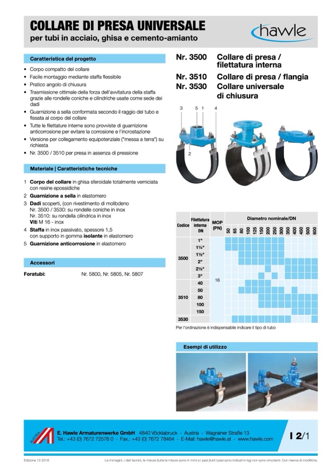 • Nr. 3500 / 3510 per presa in assenza di pressione