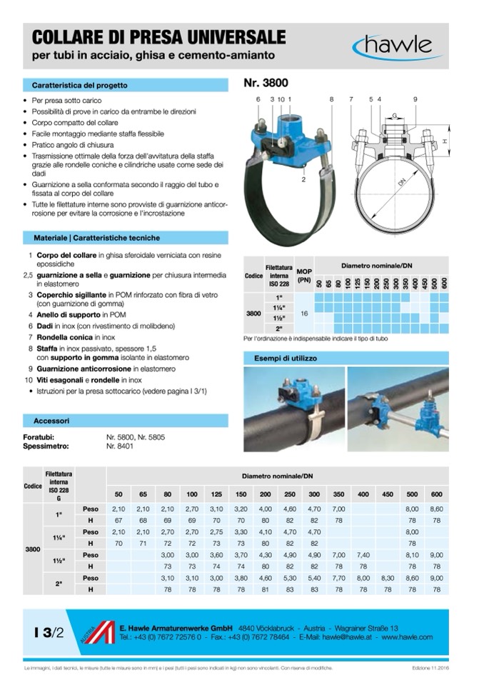 • Guarnizione a sella conformata secondo il raggio del tubo e