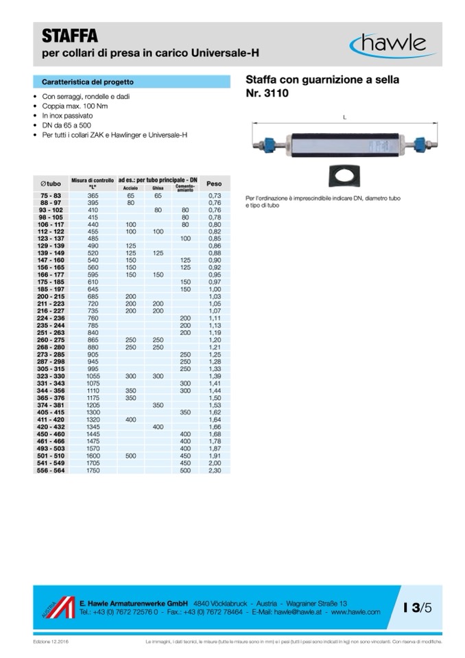Per l'ordinazione è imprescindibile indicare DN, diametro tubo