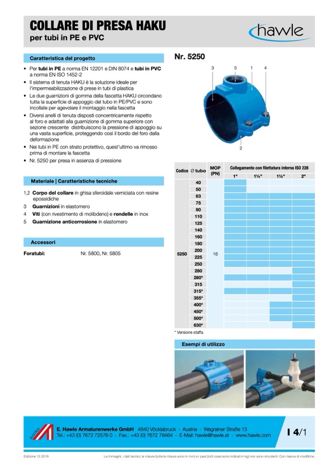 • Nr. 5250 per presa in assenza di pressione