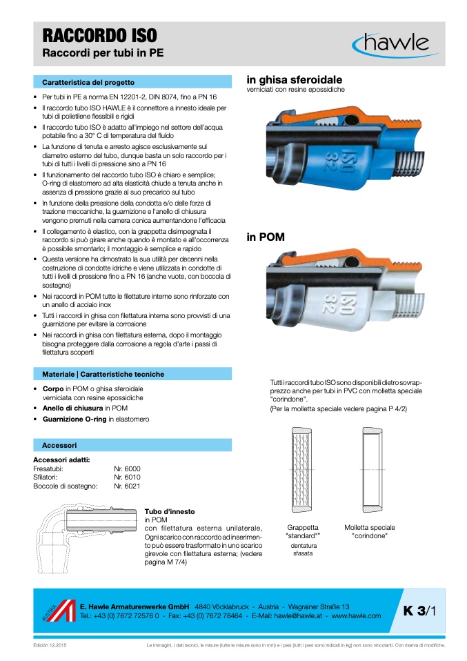 • Il raccordo tubo ISO HAWLE è il connettore a innesto ideale per