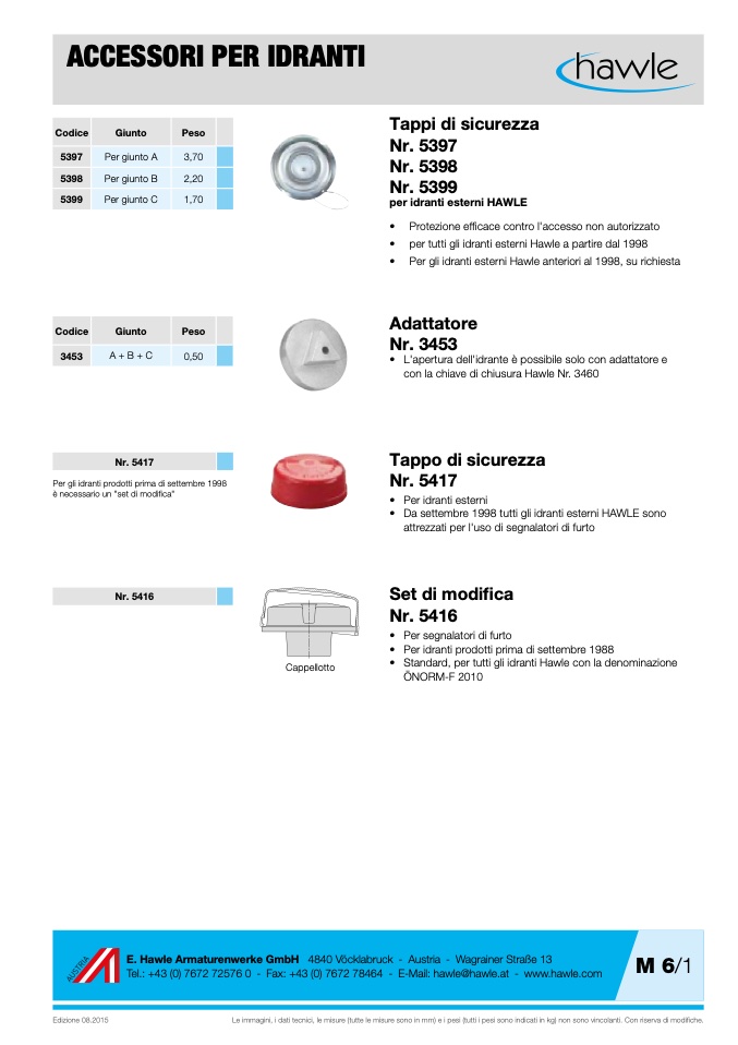 • per tutti gli idranti esterni Hawle a partire dal 1998