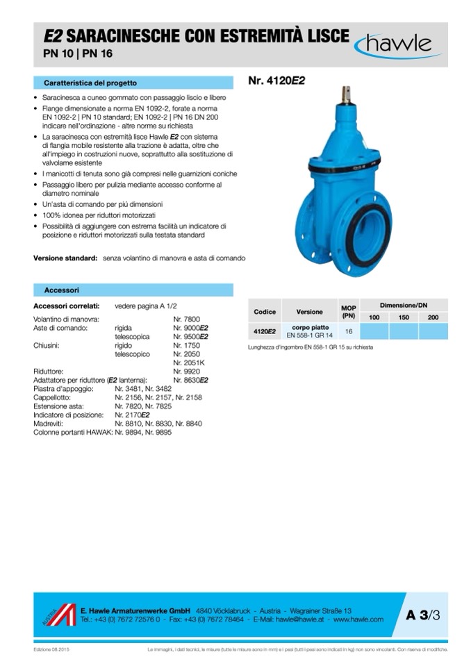 • La saracinesca con estremità lisce Hawle E2 con sistema