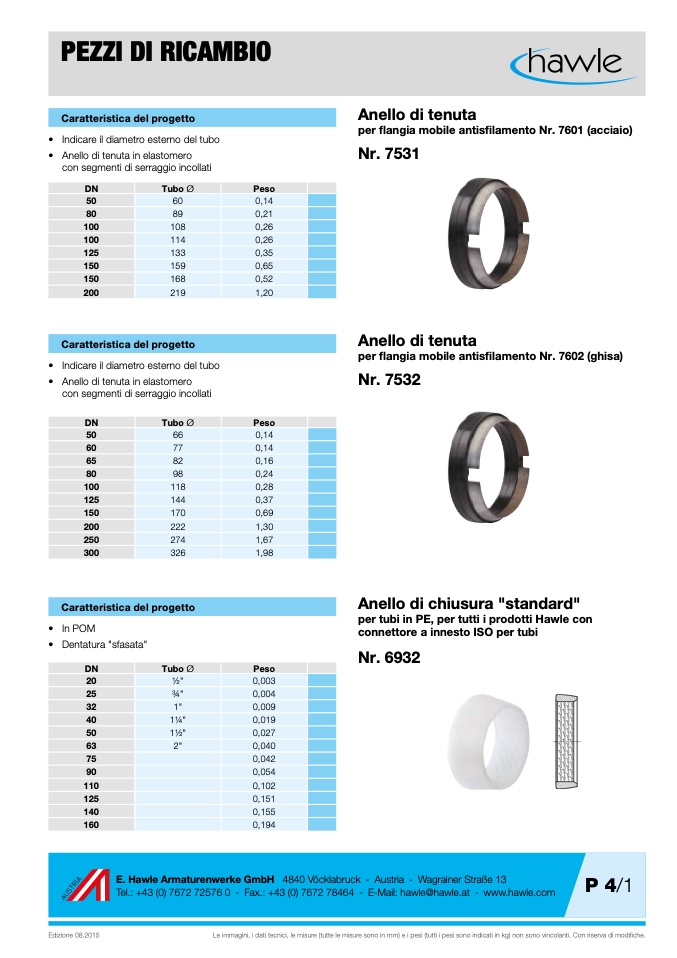 per tubi in PE, per tutti i prodotti Hawle con