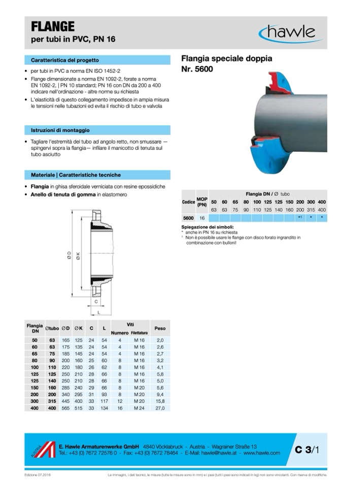 • Flange dimensionate a norma EN 1092-2, forate a norma