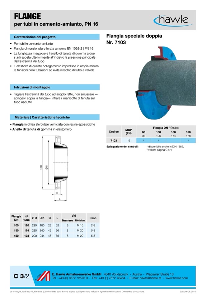 • Flangia dimensionata e forata a norma EN 1092-2 | PN 16