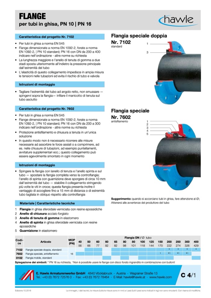 • Flange dimensionate a norma EN 1092-2, forate a norma