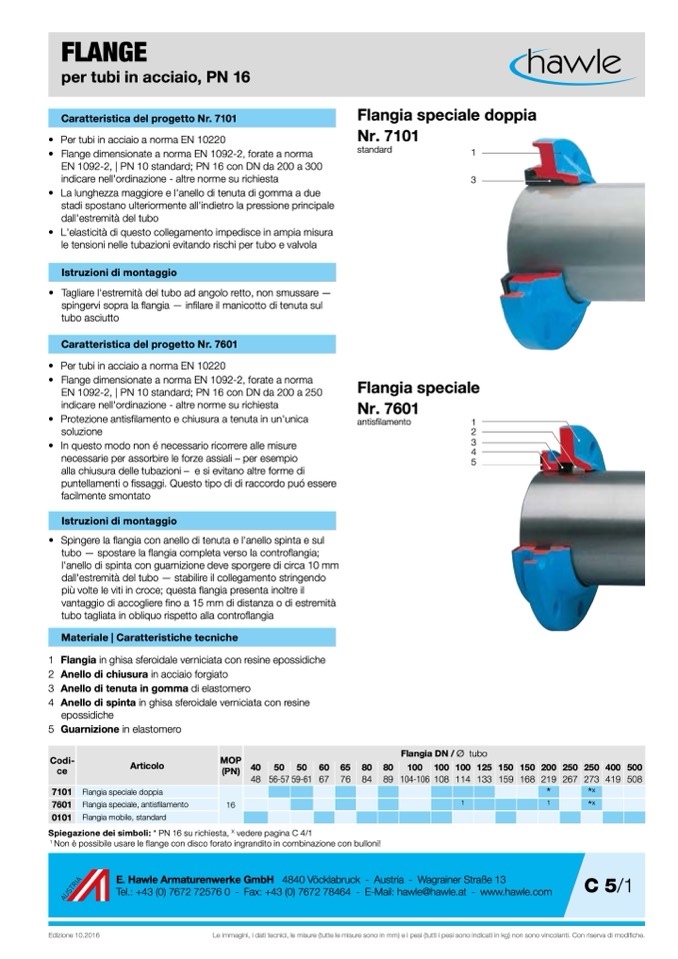 • Flange dimensionate a norma EN 1092-2, forate a norma