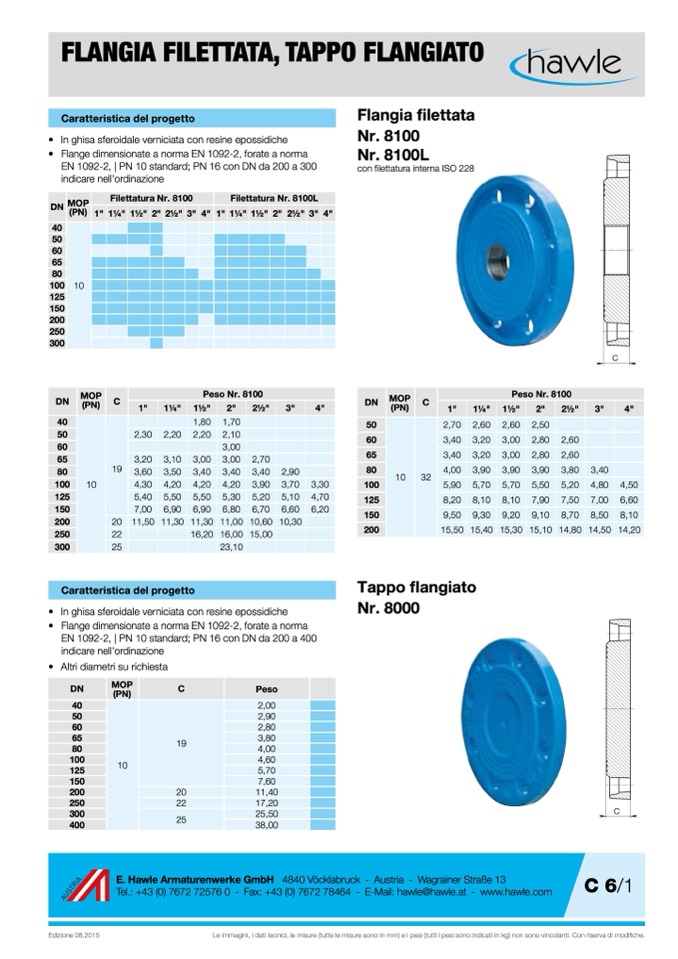 • Flange dimensionate a norma EN 1092-2, forate a norma