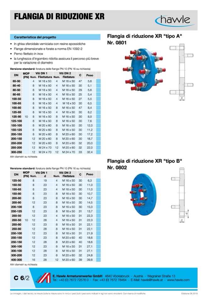 Versione standard: foratura delle flange PN 10 (PN 16 su richiesta)