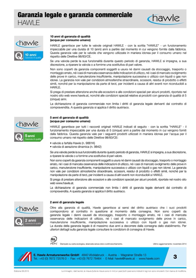 nostro sito web www.hawle.at, nonché alle condizioni speciali relative ai prodotti con garanzia di qualità di 5