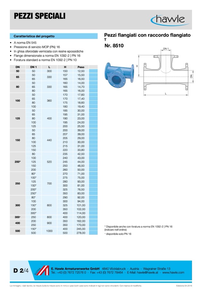 • Flange dimensionate a norma EN 1092-2 | PN 16